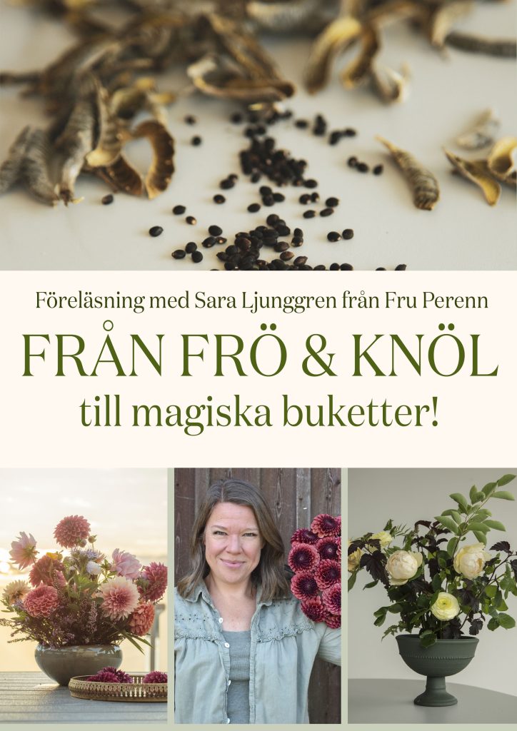 Jag berättar om vägen från knöl och frö till storslagen bukett, delar med mig av kunskap kring snittblomsodling, rabattkomposition och såklart en hel del dahliasnack! Jag visar hur du kan skapa en sprakande rabatt med känsla och hur man får igång svårstartade fröer. Du som deltagare får massor av tips på hur du skördar på bästa sätt, får längst hållbarhet på dina blommor samt hur du planerar och väljer vad du ska odla.
