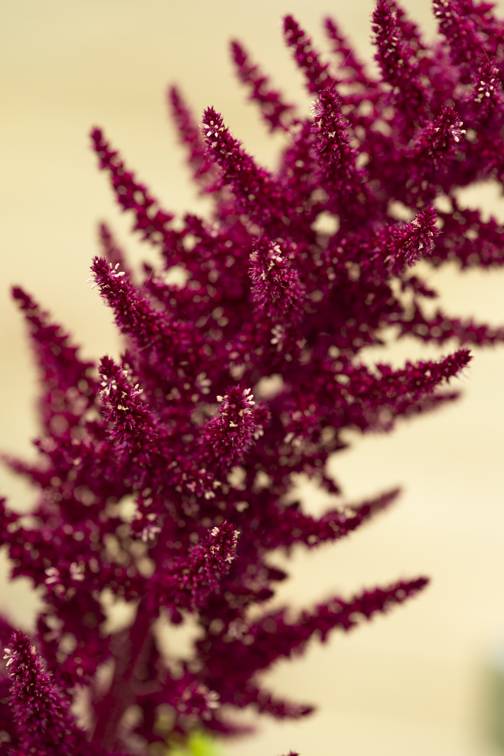 En underbart läckert vinröd blodamaranth som verkligen tillför dramatik och struktur i buketter, där den har ett väldigt bra vasliv – upp till 10 dagar! Kan även torkas som eternell. Fröna är ätbara och just den här sorten används mycket inom textilinfärgning. Den har ett mer upprättväxande växtsätt än den amaranth vi kallar ”rävsvans” (Amaranthus caudatus).