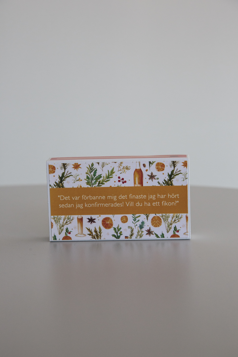 Att ha en vacker tändsticksask liggandes framme är en juldekoration om någon! Tänkvärda ord eller ord som får dig att dra på smilbanden – du har 4 varianter att välja emellan:
