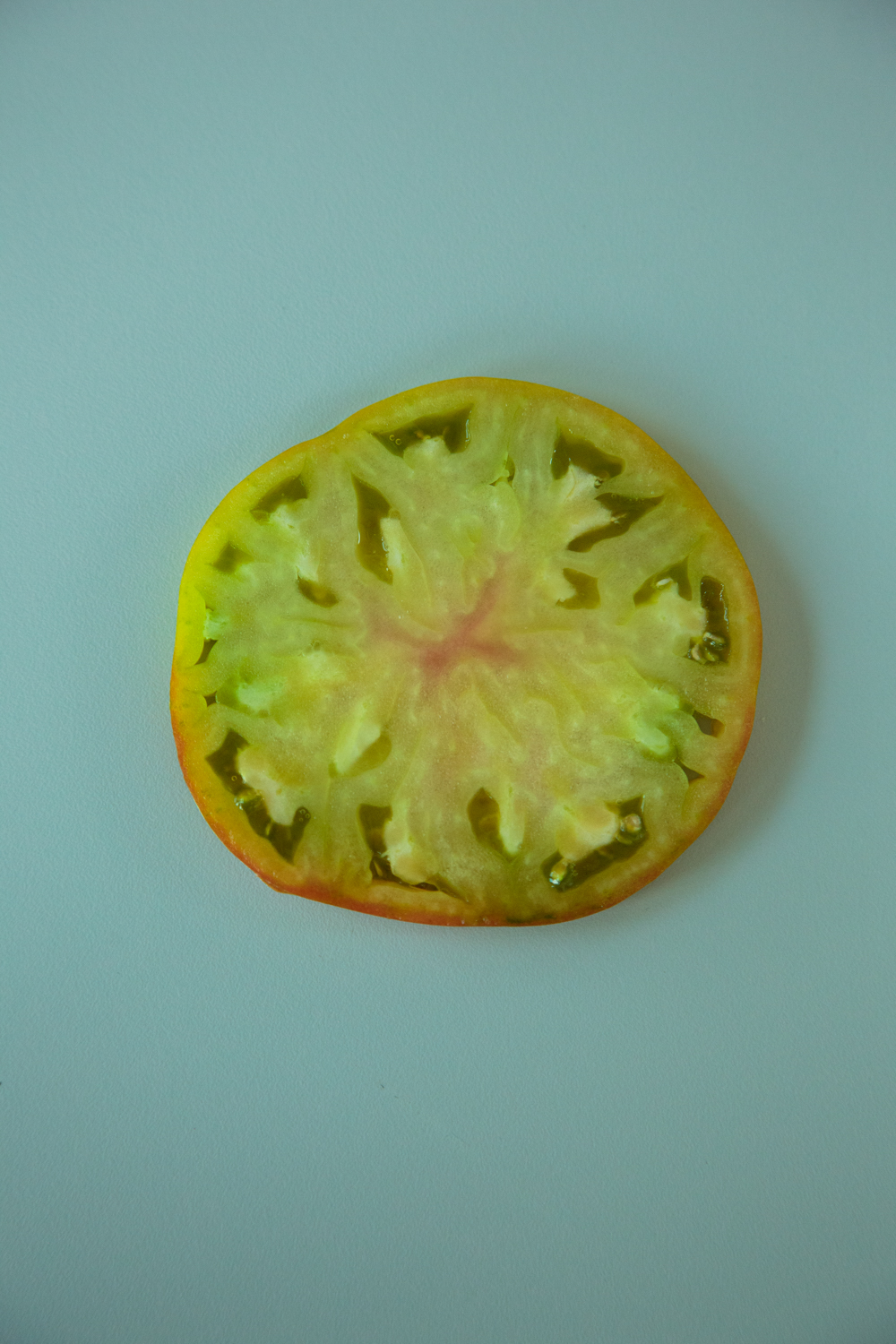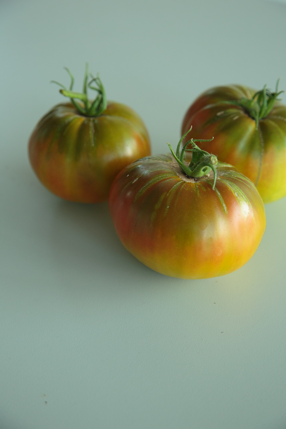 Av alla bifftomater jag odlat är denna i den absoluta toppen! Söt, saftig, högproduktiv med en näst intill fruktig arom! Dessutom klarar den mitt växthus som är ett lite skuggigare sådant. Fruktköttet är fast och innehåller nästan inga kärnor. Och så vacker den är sedan! Marmorerad i rött, gult och grönt är den en fröjd för ögat!